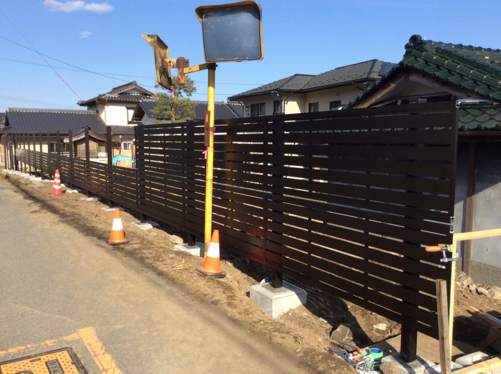 木粉と耐候性あるプラスチックを50%づつ混ぜて作られた樹脂フェンス。メーカ各種あり長年施工実績で信頼あるメーカーのものを使っております。