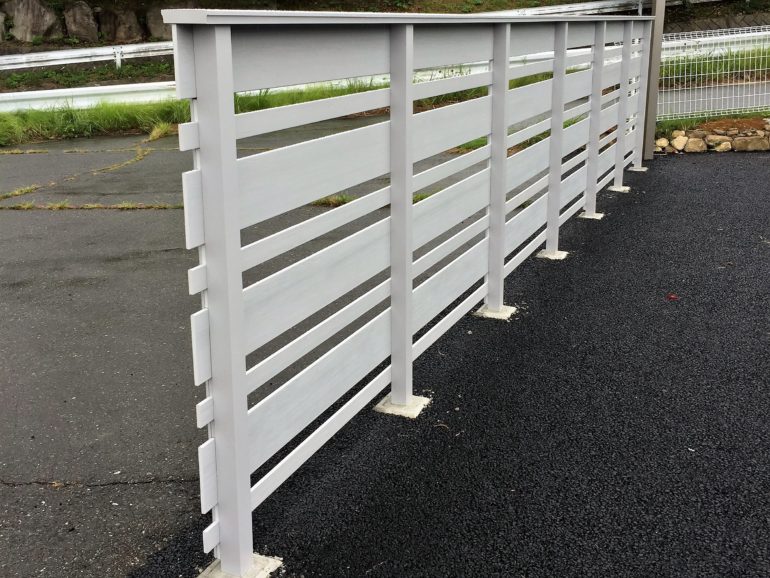 ディーズガーデン アルファウッドフェンスで目隠し。アルファウッドの表層部には脂分が付着しても白い汚れにならない上、変色することは極めて少ない超耐候性ASA樹脂(屋外用耐候性樹脂)を使用しています。また表面が硬いため非常にキズがつきにくく安心です。