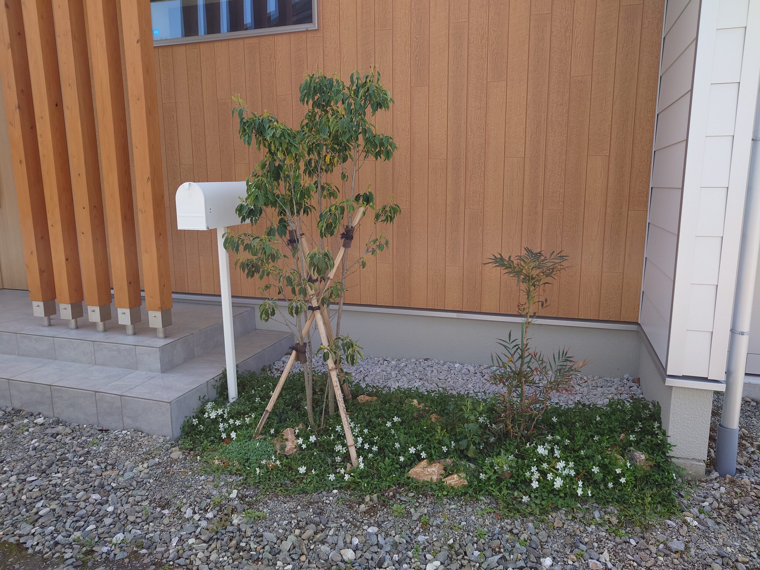 玄関前に植栽が欲しい。芝のお庭と花壇、アプローチが欲しい。お子様が遊べる芝のお庭は、テントを張ったり、いろいろなことをして遊びたい。